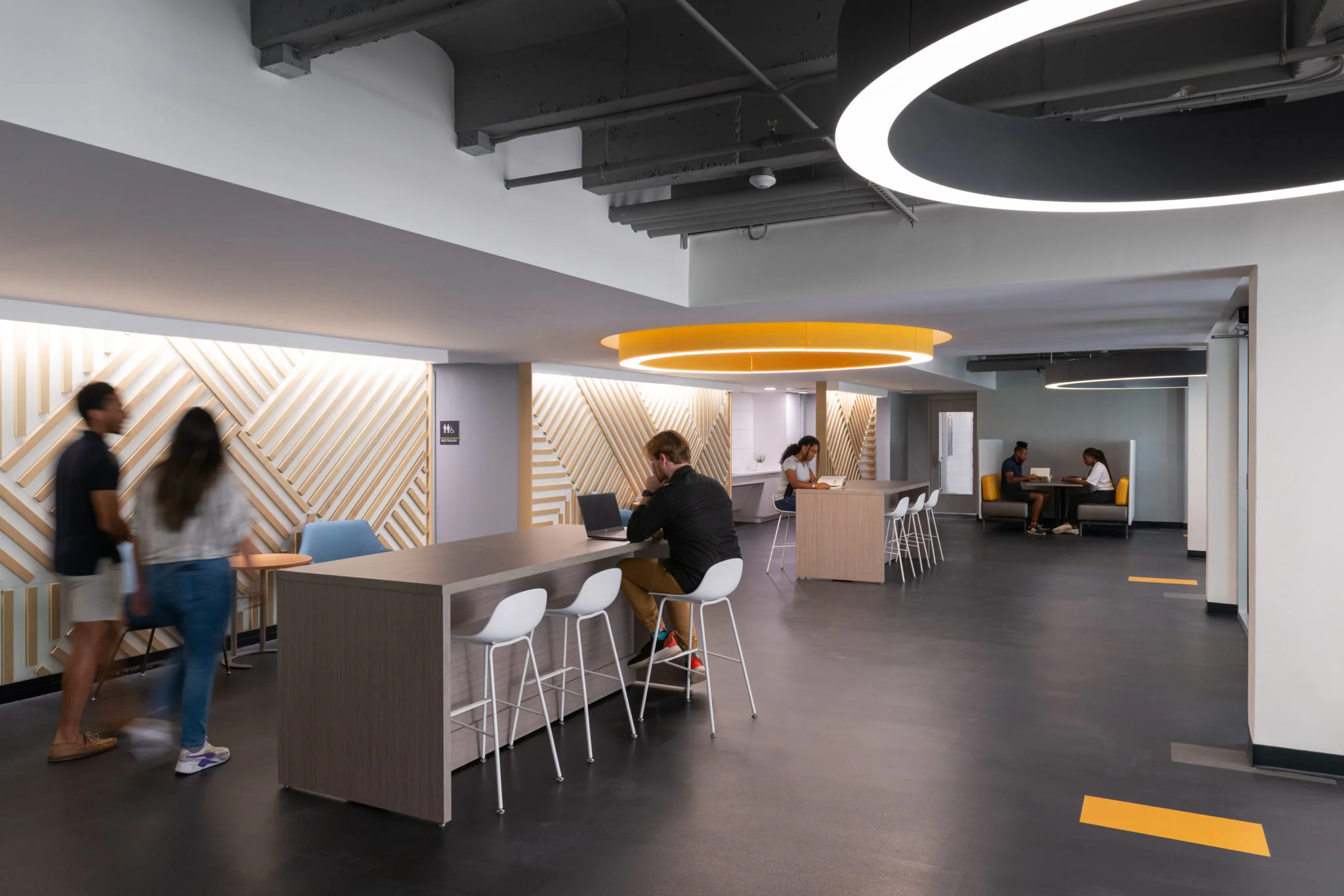 The University of Georgia’s Hill Community was opened in 1961 and houses approximately 800 first year students amongst five buildings. May Architecture was engaged to renovate the interior of all five residence halls to modernize the first floor student amenity areas and the community restrooms. We embarked on this journey with a vision of prioritizing engagement among students and fostering a vibrant sense of togetherness.