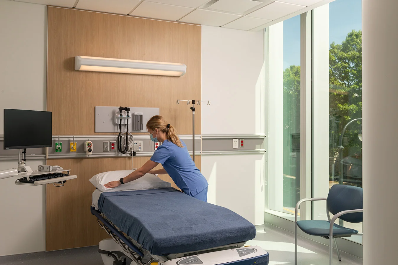 May Architecture teamed with Skidmore, Owings & Merrill (SOM) to deliver a revolutionized model of cancer care for Winship Cancer Institute at Emory Midtown. The 17-story, 455,000-square-foot facility, located within the Midtown neighborhood of Atlanta, represents a culmination of five years of close collaboration with more than 150 end-users, patients, clinicians, volunteers, surgeons, hospital staff, and construction team members. Together, we embarked on an extensive Integrated Facility Design process that included an eight-week “Cardboard City” workshop, which included mocking up every clinical practice in the new facility, including the entire 40,000 SF perioperative floor. During this extensive process, we were challenged to create a new care model that had never been seen or imagined – nothing short of redefining patient care in a new world-class cancer care center.
