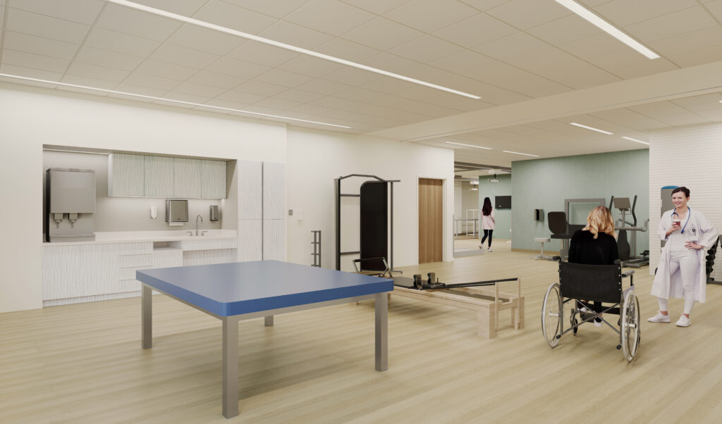 - Technology is visible, but never intrusive. From robotics to simulation labs, equipment is integrated into uplifting, human-centered environments that remind patients of how far they’ve come.