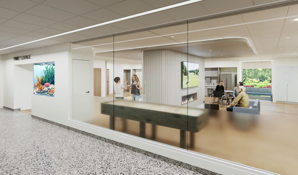 Every decision was guided by human experience like family lounges designed for comfort and learning, recreational therapy rooms that restore a sense of normalcy, quiet spaces that support psychological recovery, and artwork that transforms corridors into galleries of hope. Even technology was approached with empathy: advanced patient engagement systems that respond to sip-and-puff controls allow patients to adjust their own environments in a quiet but powerful gesture of autonomy.