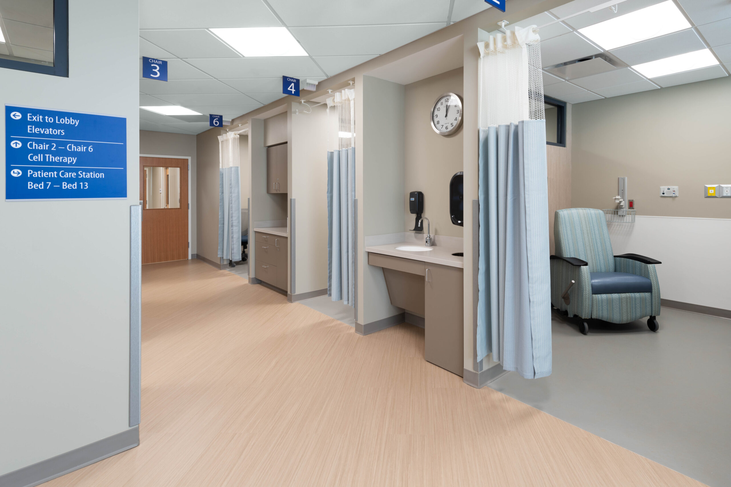 This cutting edge unit focuses on research and treatment using celluar therapies to treat cancer. The project includes a 14 bay hemapheresis patient unit directly adjacent to a Cell Therapy research laboratory suite. The unit supports the research and production of 361 and 351 HCT/P products including HPC apheresis, cord,marrow and a variety of more than minimally manipulated cellular products. Within the design for Cell Therapy suite are six (6) ISO7 labs, anterooms, airlocks, and cryogenic storage facility, which underwent an extensive review with the FDA for approval.