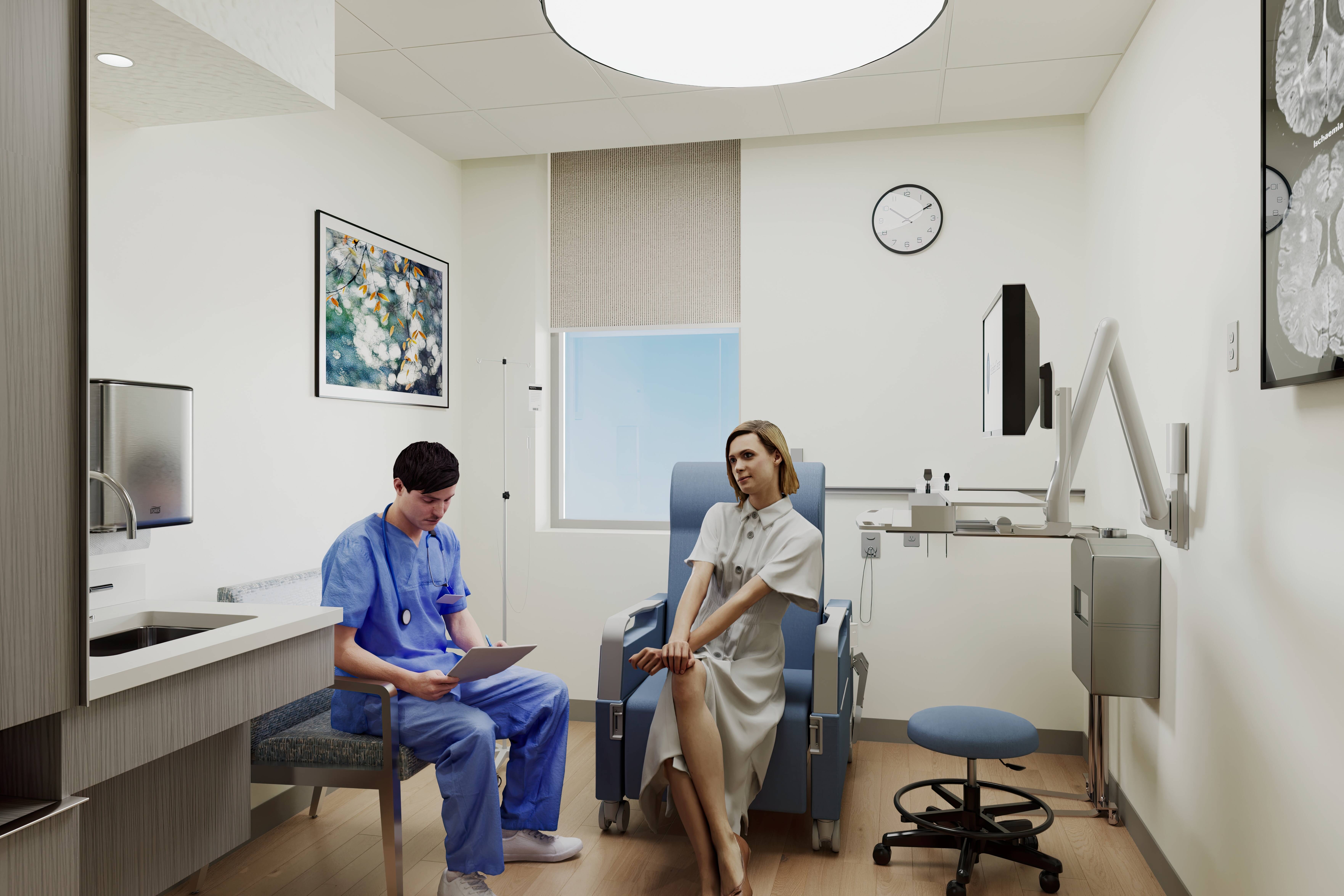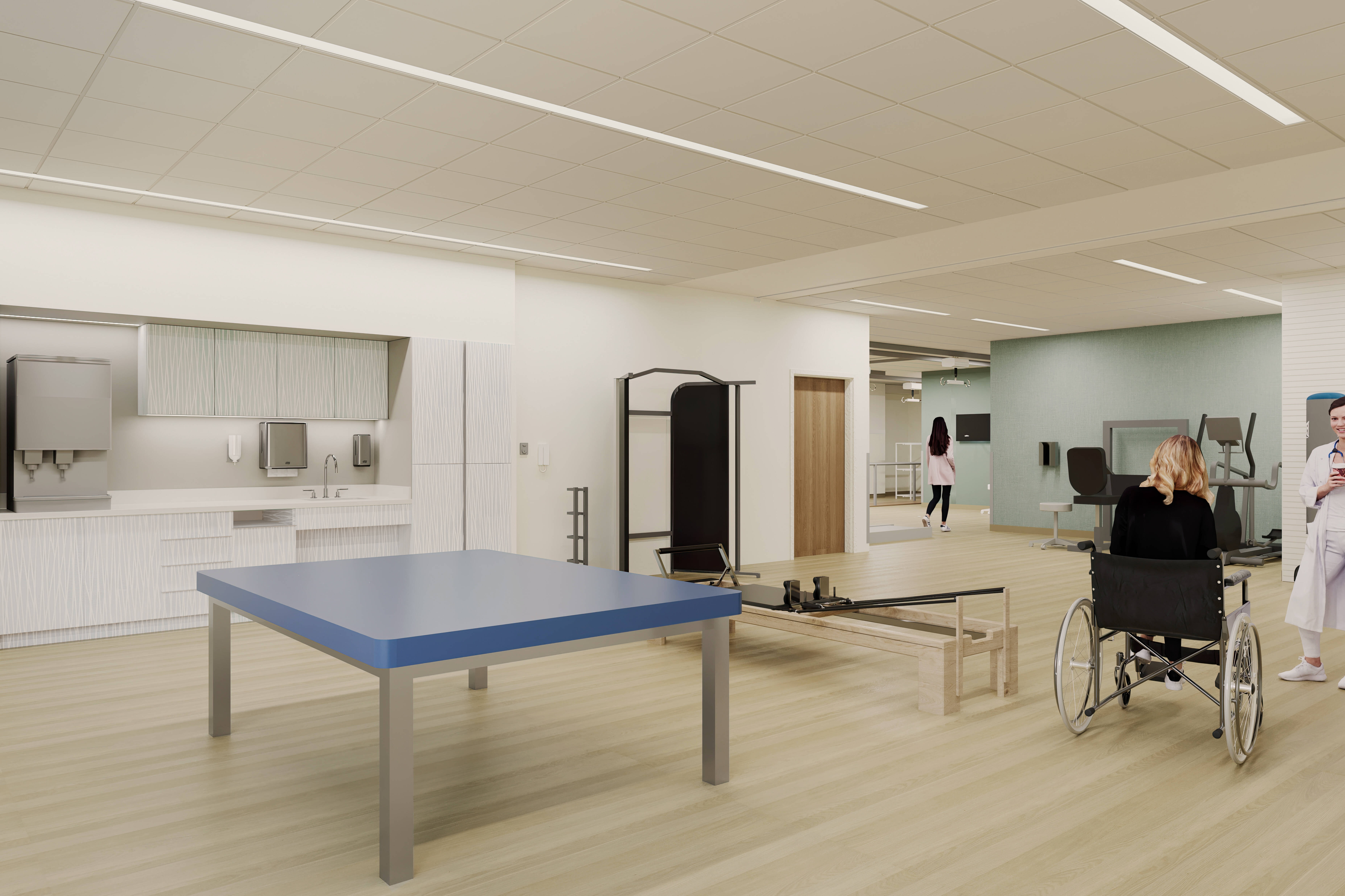 In addition, the renovation project includes three classrooms and multipurpose rooms where patients and staff can participate in educational programs and group therapy sessions. The new dedicated 35-bed inpatient floor is specifically for acute brain injury patients, with a state-of-the-art therapy gym to aid their recovery. Finally, the hospital is creating a simulation clinical training suite to provide staff with hands-on training in a safe and controlled environment.